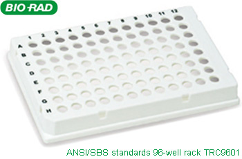 ANSI/SBS標(biāo)準(zhǔn)PCR樣品管座 | Bio-Rad | TRC9601 | 10個/包 | 96-place rack ANSI/SBS standards, autoclavable, white holds 0.2 and 0.1 ml PCR tubes and plates | 詢價 |